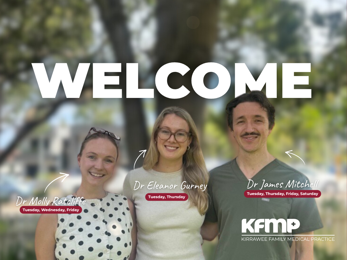 We have recently welcomed some new additions to our team; Dr James Mitchell, Dr Molly Ratcliffe & Dr Eleanor Gurney. They are all now seeing patients at our Kirrawee site.